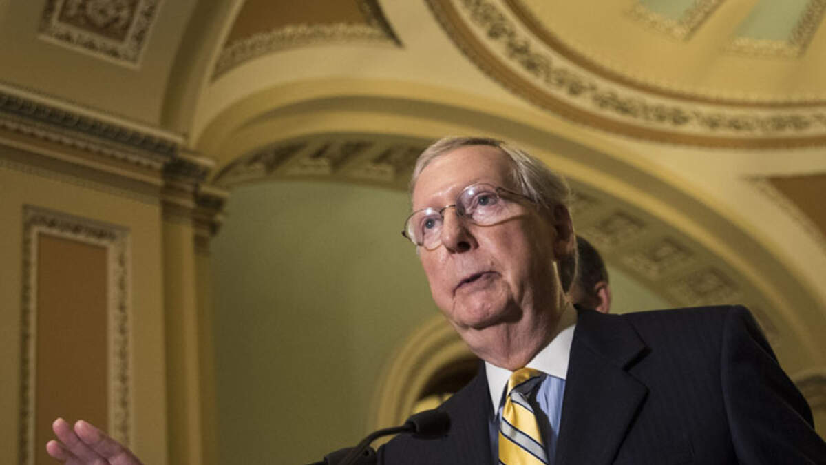 Senator Mitch McConnell is walking towards his vehicle with his staff and or security while being followed by protesters with "tough words" and cell phone video cameras to document the event.